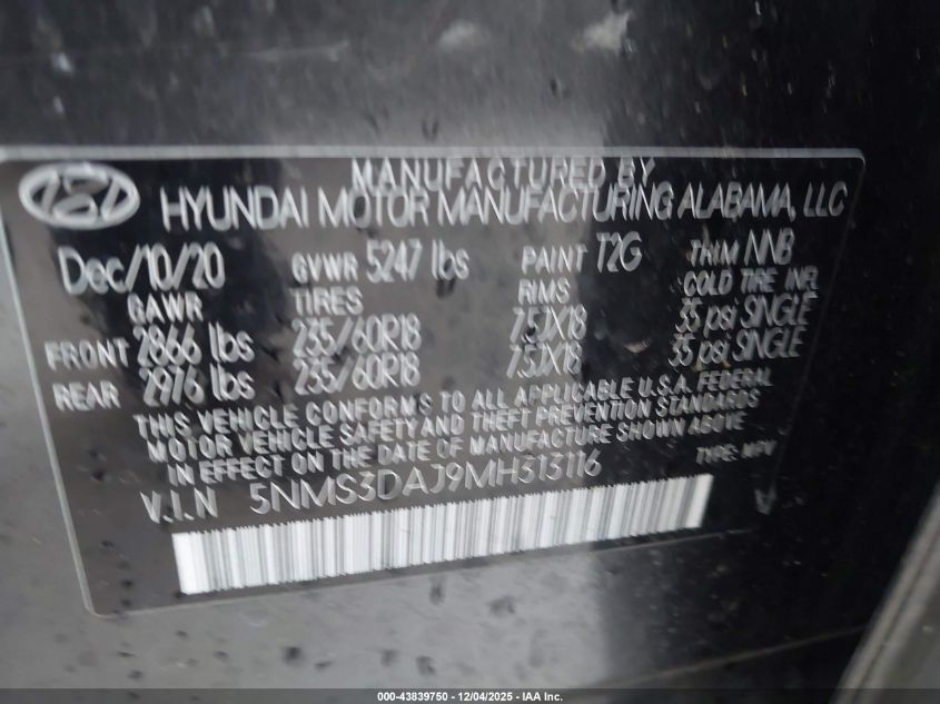 2021 HYUNDAI SANTA FE SEL