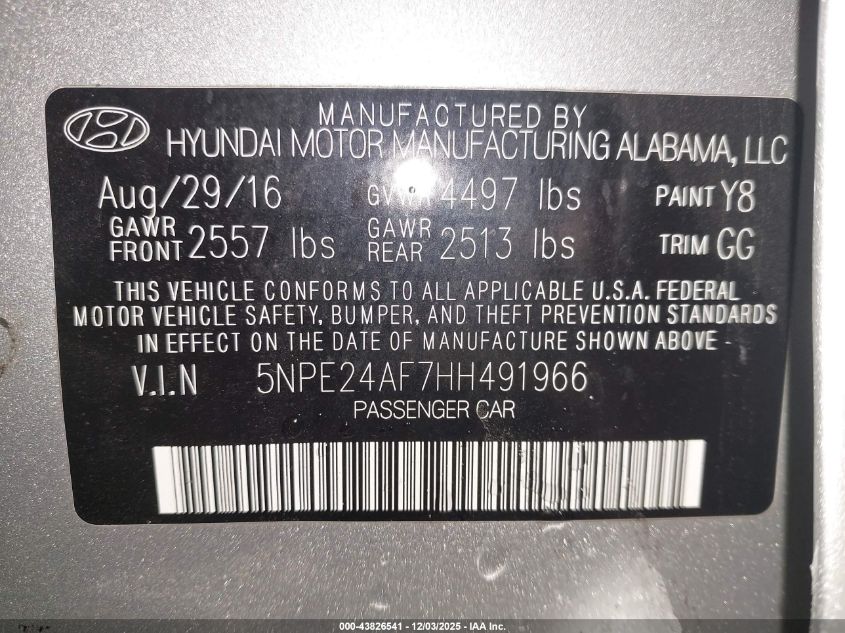 2017 HYUNDAI SONATA 2017 року Бензин, 2.4, Передній привід, vin - 5NPE24AF7HH491966 з США