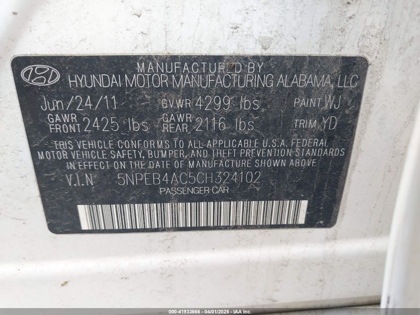 2012 HYUNDAI SONATA GLS