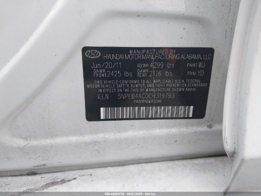 2012 HYUNDAI SONATA GLS