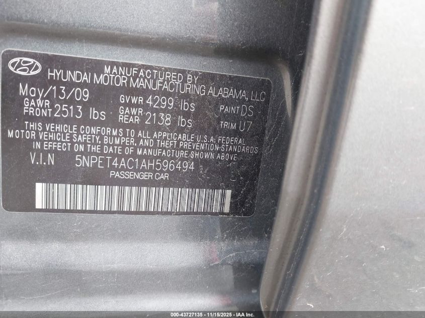 2010 HYUNDAI SONATA GLS