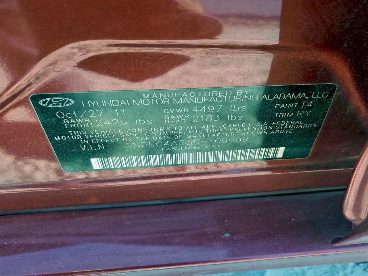 2012 HYUNDAI SONATA GLS