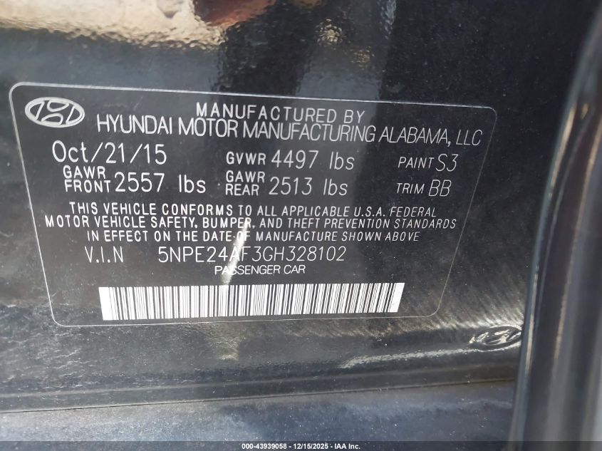 2016 HYUNDAI SONATA 2016 року Бензин, 2.4, Передній привід, vin - 5NPE24AF3GH328102 з США
