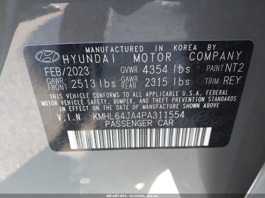 2023 HYUNDAI SONATA 2023 року Бензин, 2.5, Передній привід, vin - KMHL64JA4PA311554 з США
