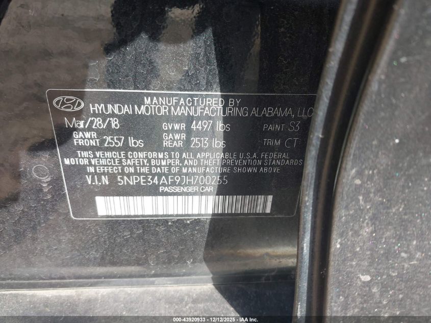 2018 HYUNDAI SONATA 2018 року Бензин, 2.4, Передній привід, vin - 5NPE34AF9JH700255 з США