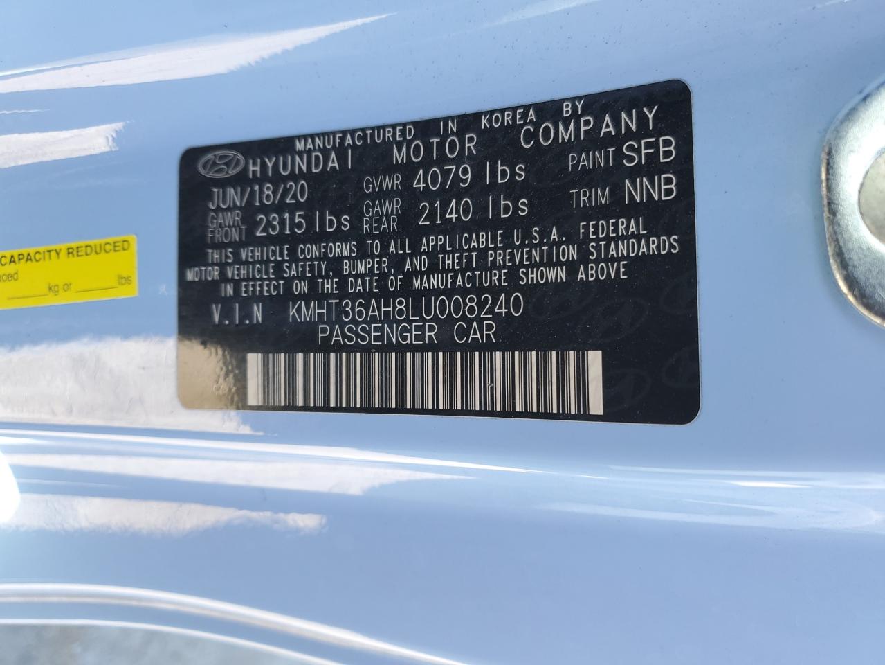2020 HYUNDAI VELOSTER 2020 року Бензин, 2.0, , vin - KMHT36AH8LU008240 з США