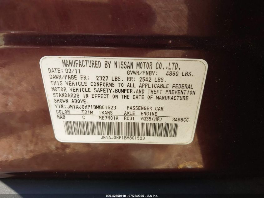 2011 INFINITI EX35 2011 року Бензин, 3.5, Невідомо, vin - JN1AJ0HP1BM****** з США