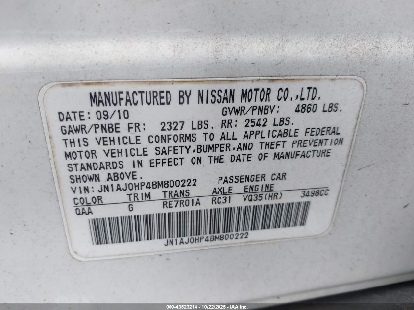 2011 INFINITI EX35 2011 року Бензин, 3.5, , vin - JN1AJ0HP4BM800222 з США