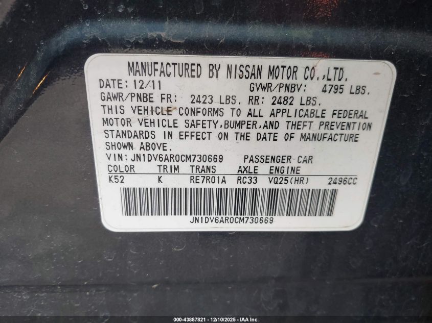 2012 INFINITI G25 2012 року Бензин, 2.5, Повний привід, vin - JN1DV6AR0CM730669 з США