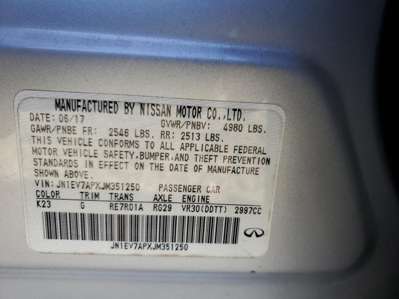 Колір СрібнийЦиліндри 6Привід Задній привідVIN JN1EV7APXJM351250Стан НевідомоУшкодження Передня або задня AutoRIA