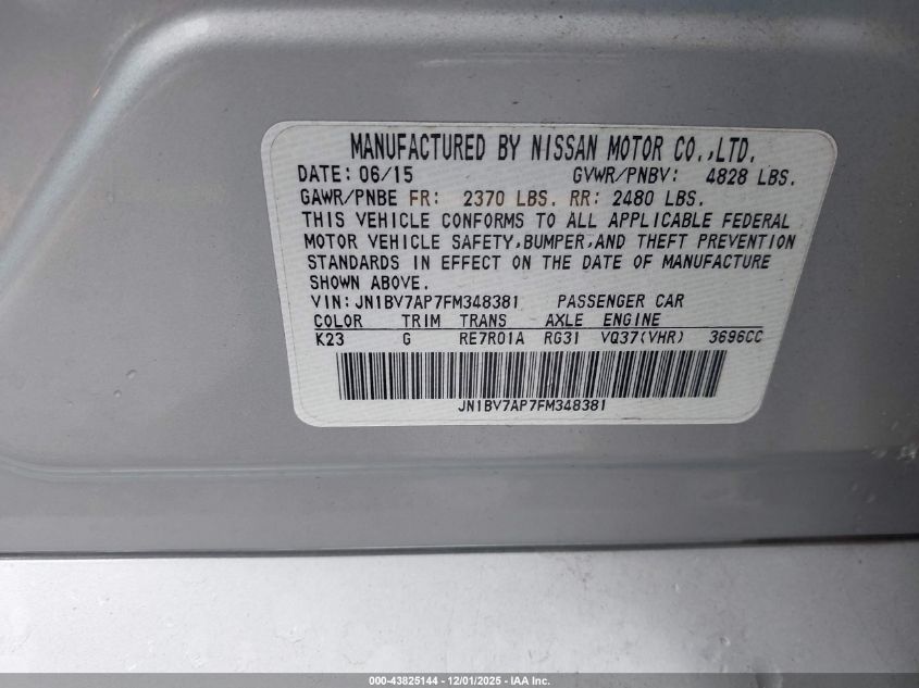 2015 INFINITI Q50 2015 року Бензин, 3.7, Задній привід, vin - JN1BV7AP7FM348381 з США