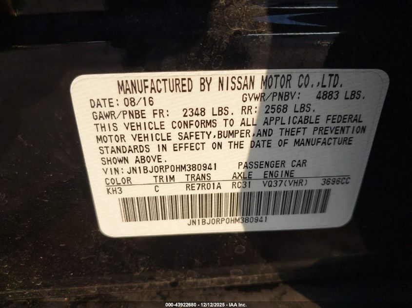 2017 INFINITI QX50 2017 року Бензин, 3.7, , vin - JN1BJ0RP0HM380941 з США