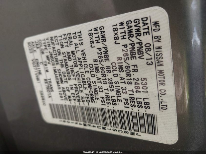 Колір СірийЦиліндри 6Привід НевідомоVIN JN8CS1MU4EM******Стан НевідомоУшкодження Права сторонаДата аукціону 2025-08-20