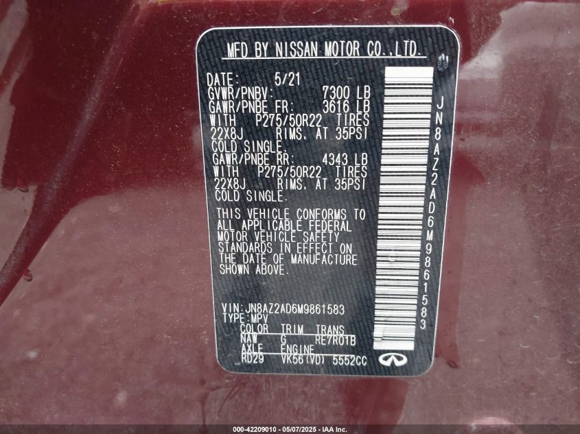 2021 INFINITI QX80 2021 року Бензин, 5.6, Невідомо, vin - JN8AZ2AD6M9****** з США