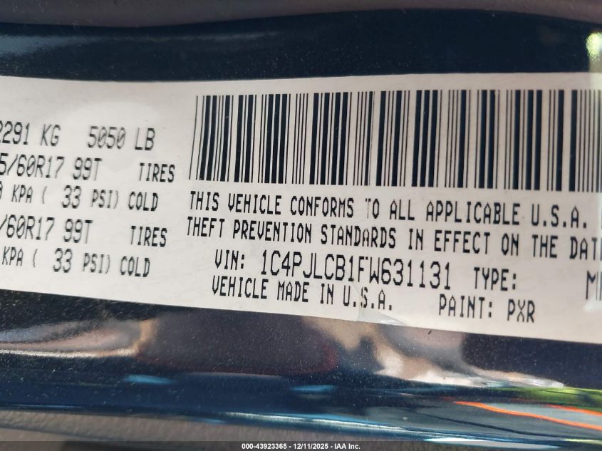 2015 JEEP CHEROKEE 2015 року Бензин, 2.4, Передній привід, vin - 1C4PJLCB1FW631131 з США