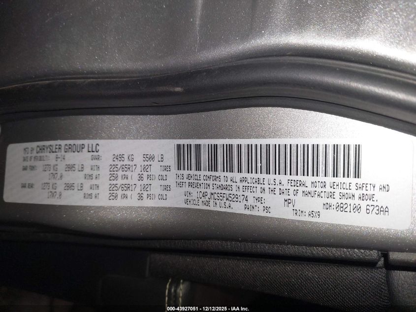 2015 JEEP CHEROKEE 2015 року Бензин, 3.2, Повний привід, vin - 1C4PJMCS5FW529174 з США