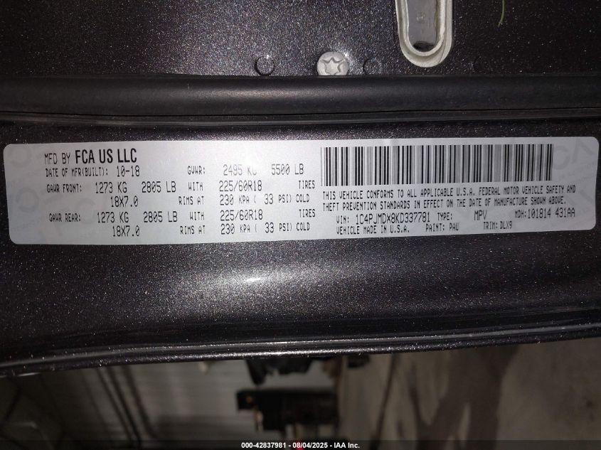 Колір СірийЦиліндри 6Привід Повний привідVIN 1C4PJMDX8KD******Стан НевідомоУшкодження Передня або задняДата аукціону 2025-08-28