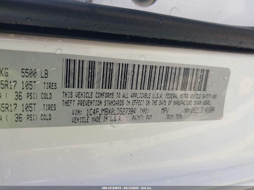 Колір БілийЦиліндри 6Привід Повний привідVIN 1C4PJMBX0LD******Стан НевідомоУшкодження Передня або задняДата аукціону 2025-10-02