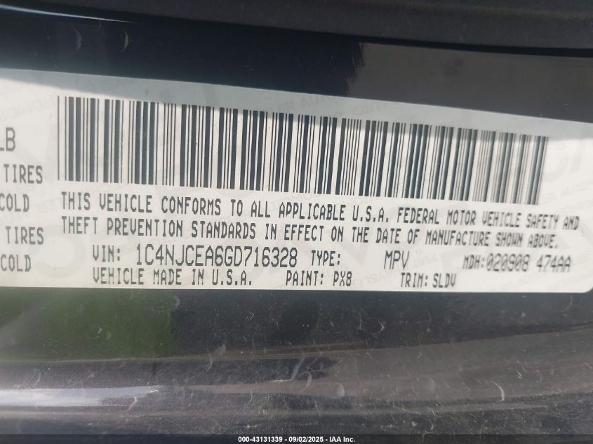 Колір ЧорнийЦиліндри 4Привід Передній привідVIN 1C4NJCEA6GD******Стан НевідомоУшкодження НезначніДата аукціону 2025-09-19