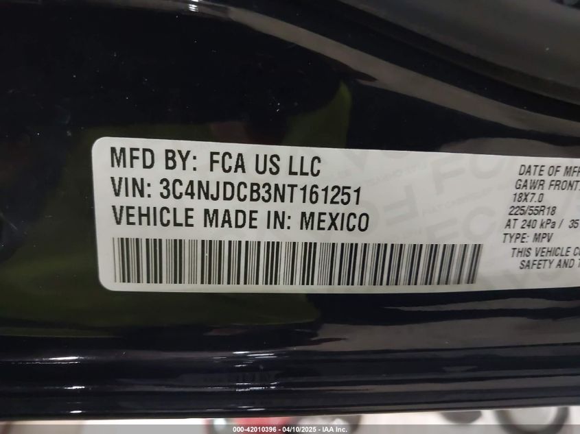Колір ЧорнийЦиліндри 4Привід Повний привідVIN 3C4NJDCB3NT******Стан НевідомоУшкодження ЗадняДата аукціону 2025-10-01