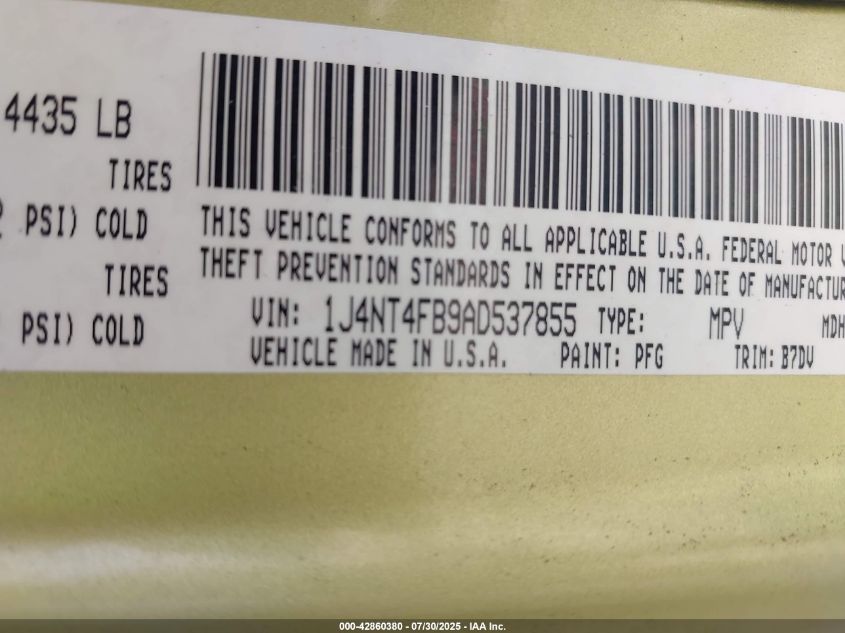 Колір ЗеленийЦиліндри 4Привід Передній привідVIN 1J4NT4FB9AD******Стан НевідомоУшкодження Передня ліваДата аукціону 2025-09-03