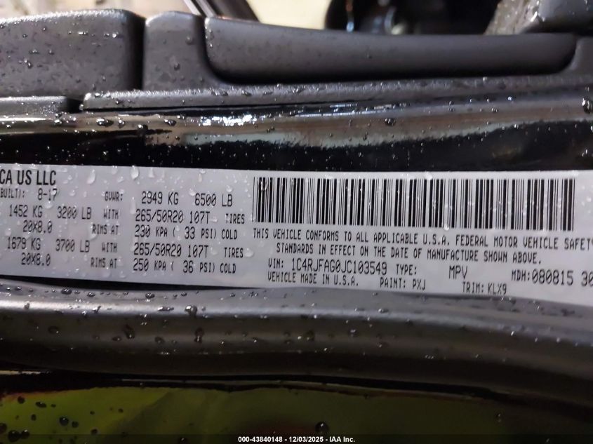 2018 JEEP GRAND CHEROKEE 2018 року Бензин, 3.6, Повний привід, vin - 1C4RJFAG0JC103549 з США