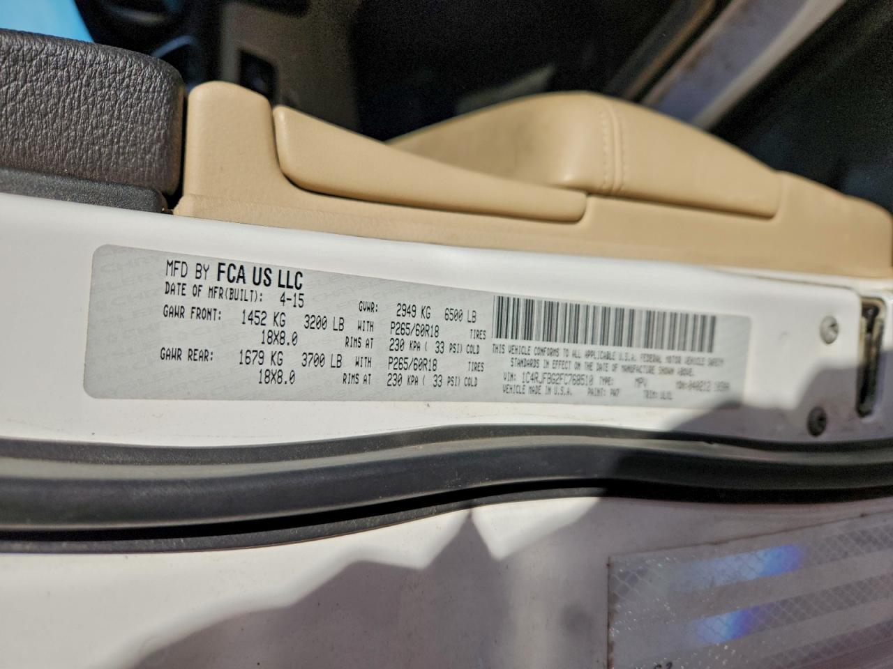 Колір БілийЦиліндри 6Привід 4x4 з заднім приводомVIN 1C4RJFBG2FC768510Стан Заводиться та їде (перевірено)Ушкодження Передня або задня AutoRIA