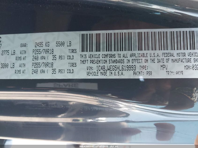 2017 JEEP WRANGLER SPORT