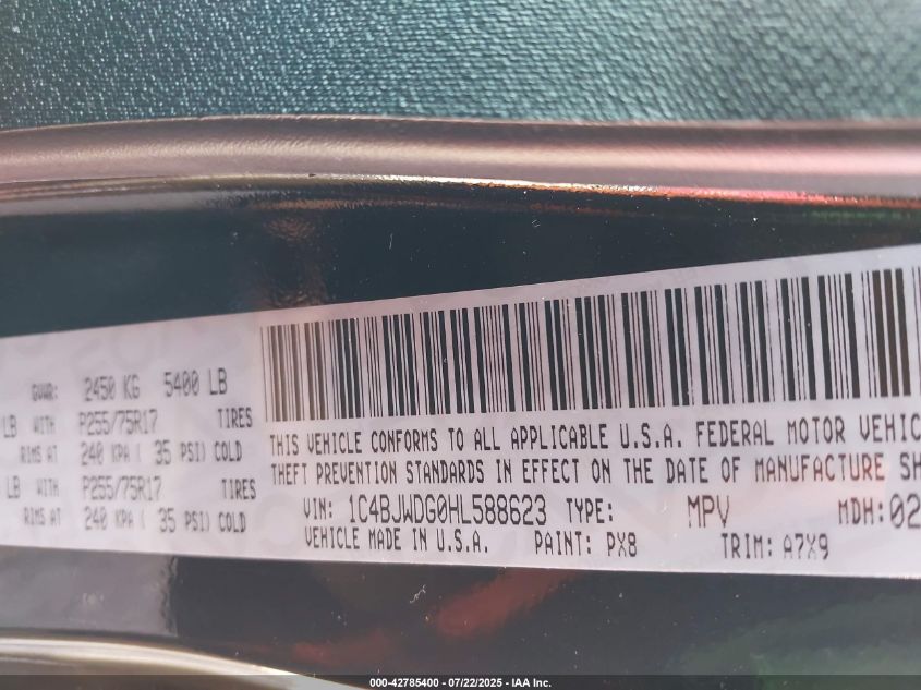 Колір ЧорнийЦиліндри 6Привід Повний привідVIN 1C4BJWDG0HL******Стан НевідомоУшкодження НезначніДата аукціону 2025-08-13