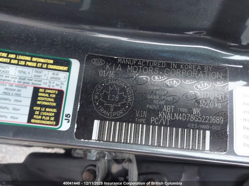 2016 KIA CADENZA LUXURY