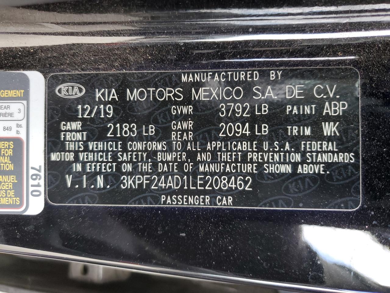2020 KIA FORTE 2020 року Бензин, 2.0, , vin - 3KPF24AD1LE208462 з США