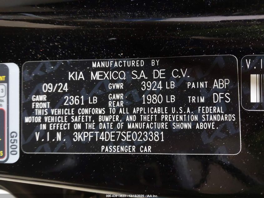 2025 KIA K4 2025 року Бензин, 2.0, Передній привід, vin - 3KPFT4DE7SE023381 з США