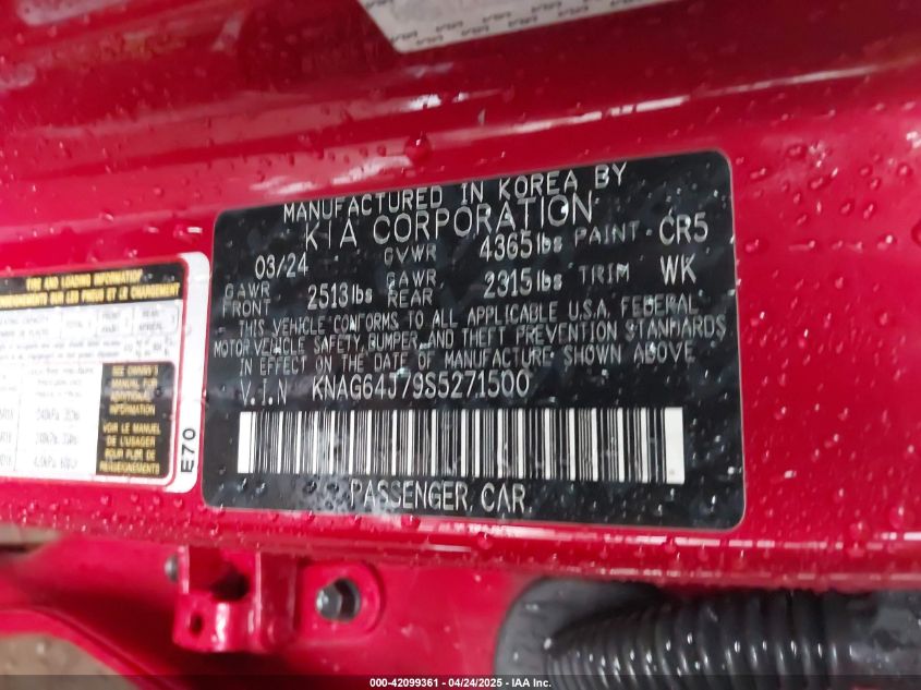 2025 KIA K5 2025 року Бензин, 2.5, Передній привід, vin - KNAG64J79S5****** з США