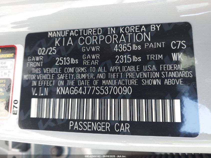 2025 KIA K5 2025 року Бензин, 2.5, Передній привід, vin - KNAG64J77S5370090 з США