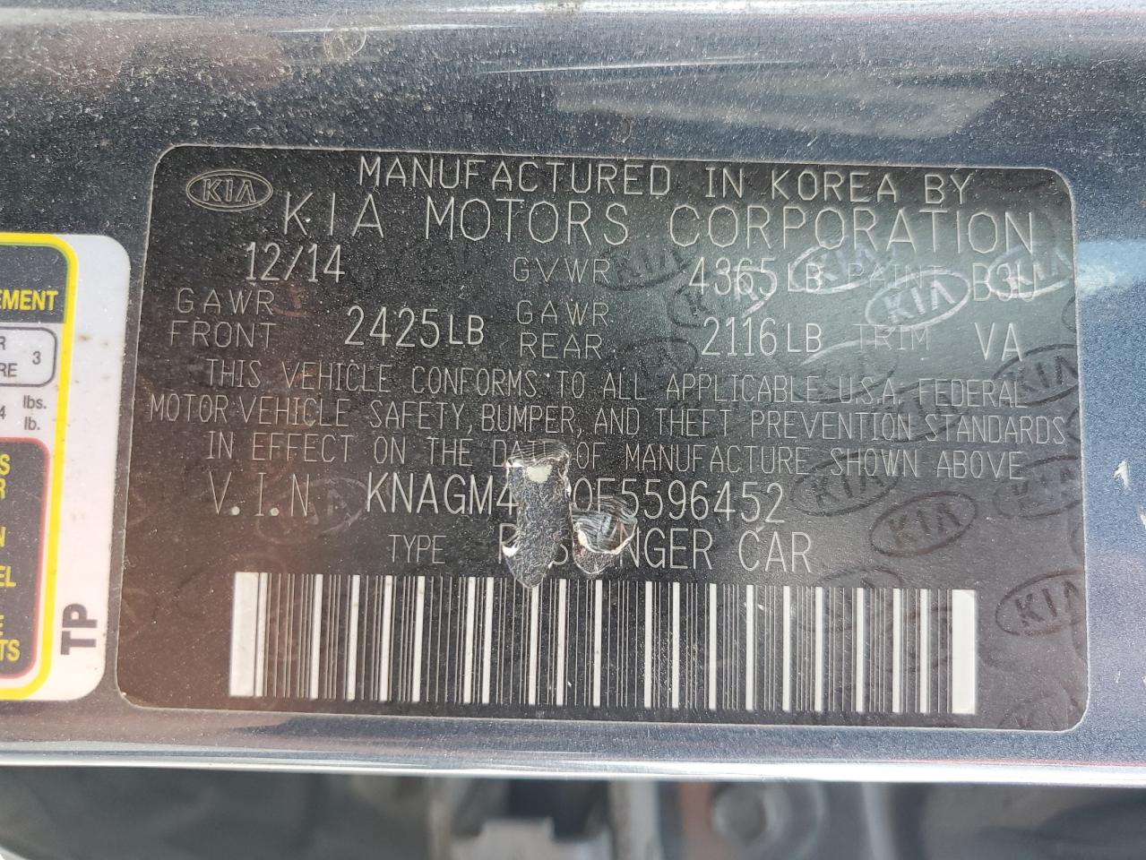 2015 KIA OPTIMA 2015 року Бензин, 2.4, , vin - KNAGM4A70F5596452 з США