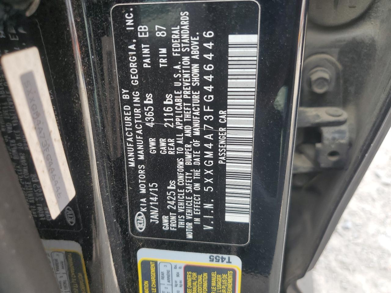 2015 KIA OPTIMA 2015 року Бензин, 2.4, , vin - 5XXGM4A73FG446446 з США