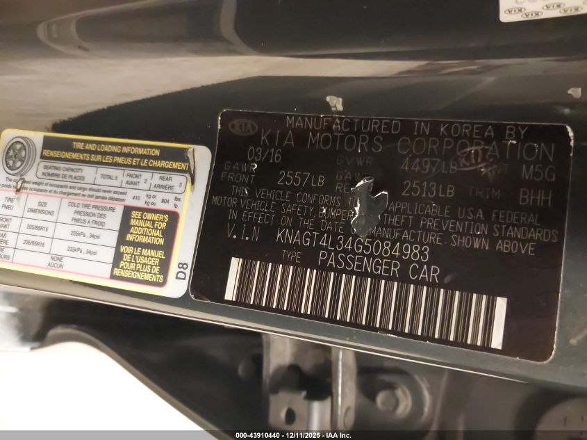 2016 KIA OPTIMA 2016 року Бензин, 2.4, Передній привід, vin - KNAGT4L34G5084983 з США
