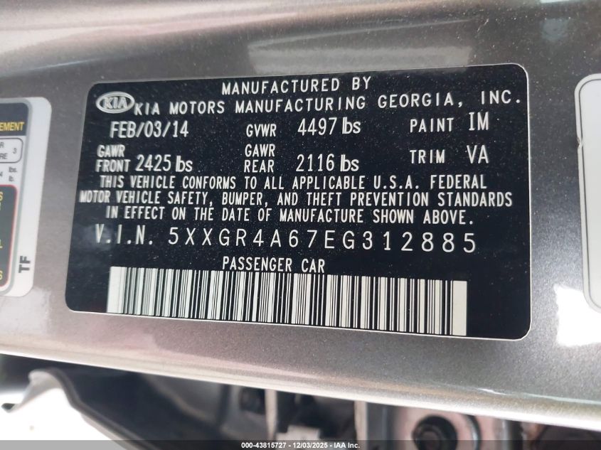2014 KIA OPTIMA 2014 року Бензин, 2.0, Передній привід, vin - 5XXGR4A67EG312885 з США
