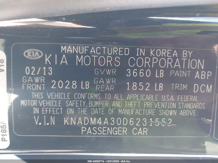 2013 KIA RIO 2013 року Бензин, 1.6, Передній привід, vin - KNADM4A30D6231552 з США