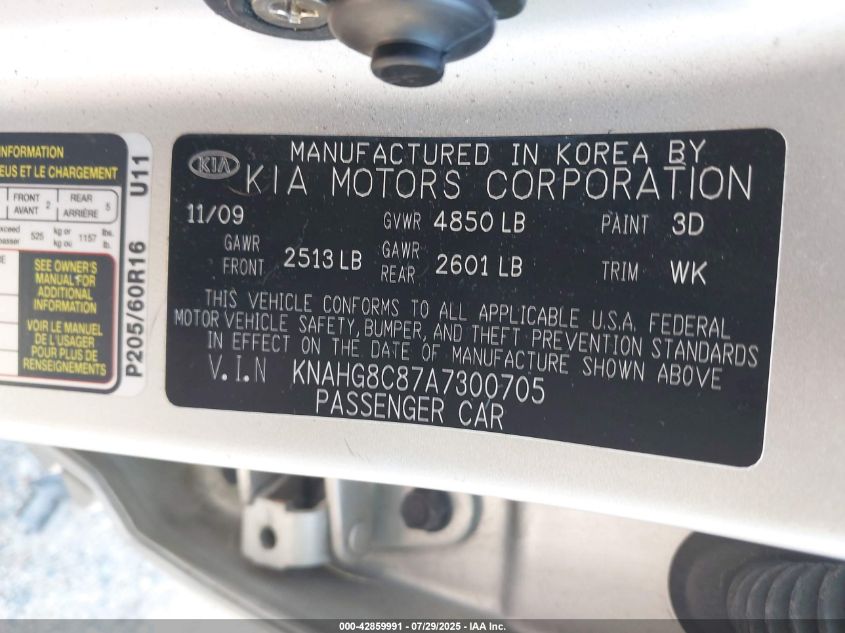 2010 KIA RONDO 2010 року Бензин, 2.4, Передній привід, vin - KNAHG8C87A7****** з США