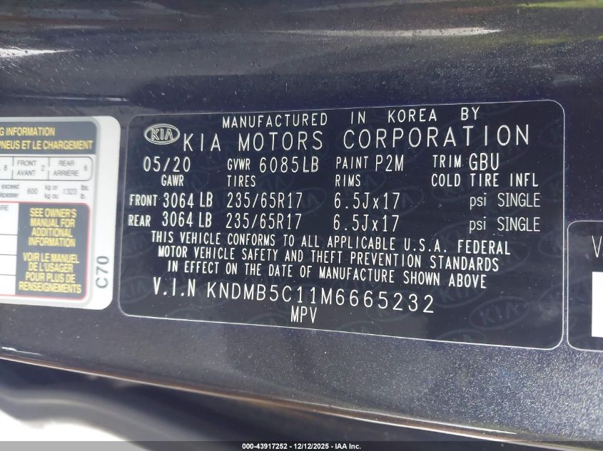 Колір СірийЦиліндри 6Привід Передній привідVIN KNDMB5C11M6665232Стан СтаціонарноУшкодження Передня або задня