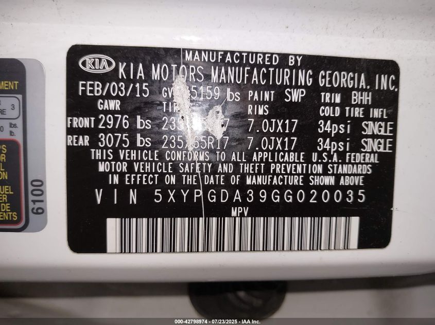 2016 KIA SORENTO SX
