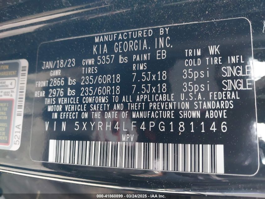 2023 KIA SORENTO 2023 року Бензин, 2.5, Передній привід, vin - 5XYRH4LF4PG181146 з США