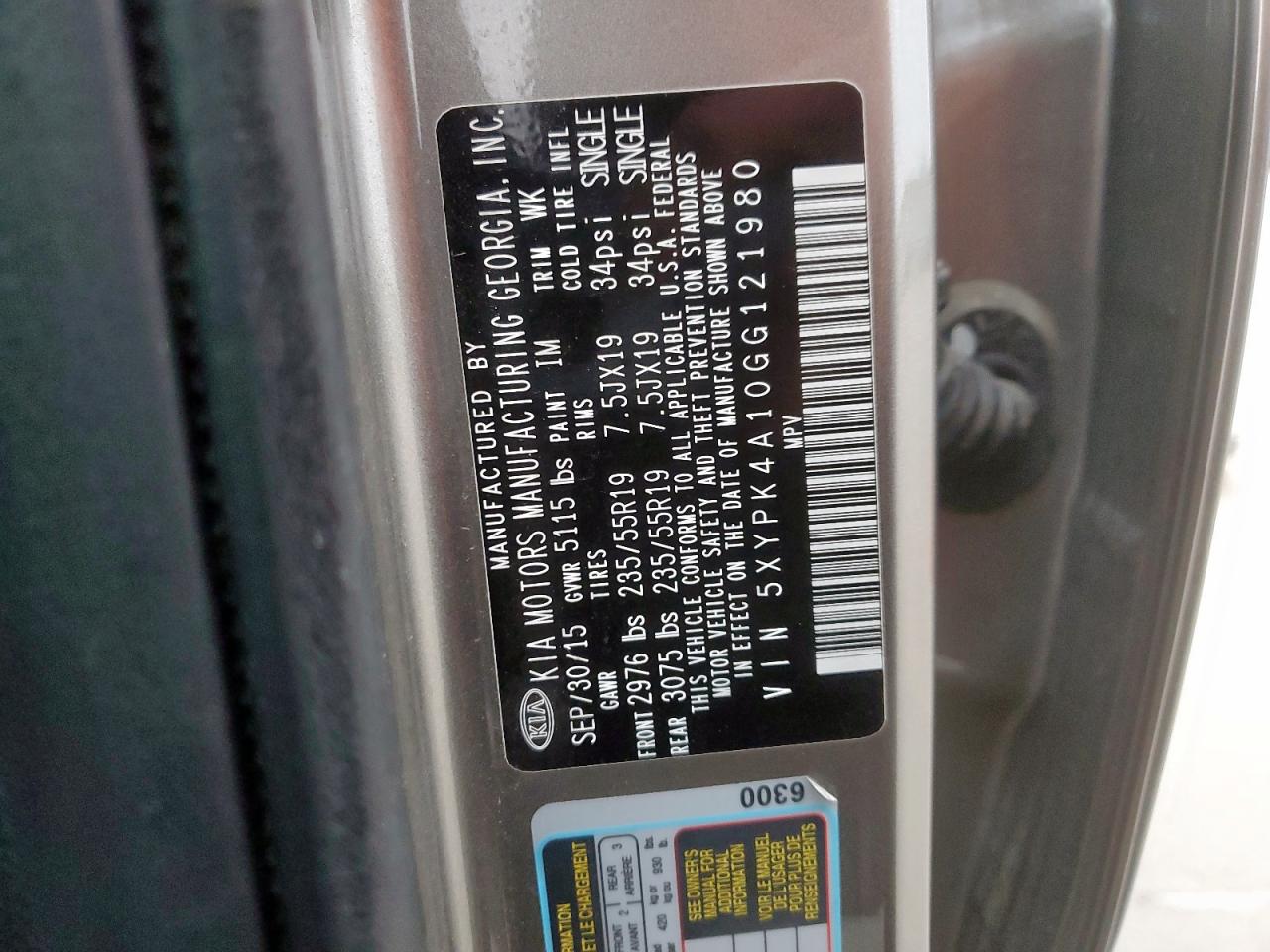 2016 KIA SORENTO SX