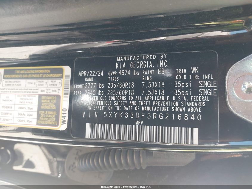 2024 KIA SPORTAGE 2024 року Бензин, 2.5, Передній привід, vin - 5XYK33DF5RG216840 з США