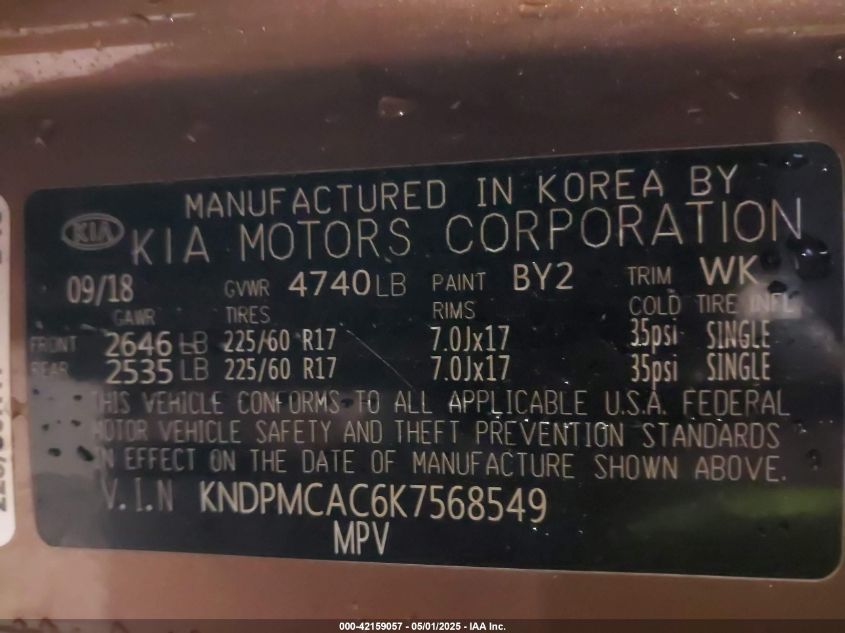 2019 KIA SPORTAGE 2019 року Бензин, 2.4, Повний привід, vin - KNDPMCAC6K7****** з США