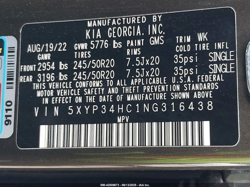 2022 KIA TELLURIDE 2022 року Бензин, 3.8, Передній привід, vin - 5XYP34HC1NG316438 з США