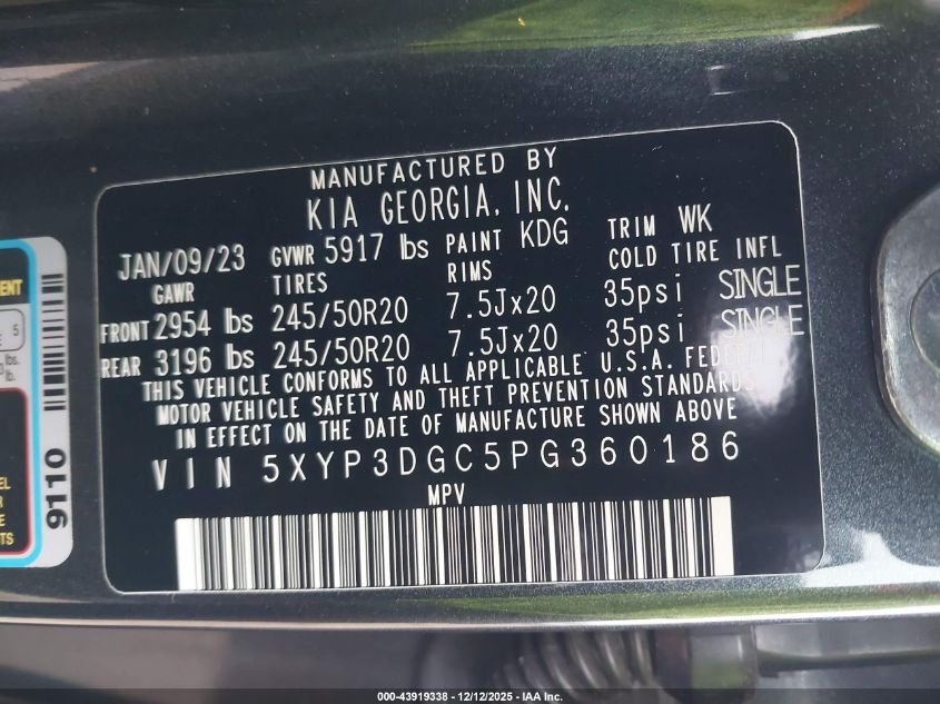2023 KIA TELLURIDE 2023 року Бензин, 3.8, Повний привід, vin - 5XYP3DGC5PG360186 з США