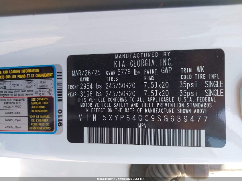2025 KIA TELLURIDE 2025 року Бензин, 3.8, Передній привід, vin - 5XYP64GC9SG639477 з США