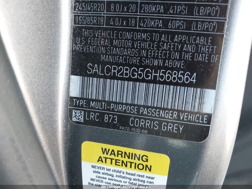 2016 LAND ROVER DISCOVERY 2016 року Бензин, 2.0, Повний привід, vin - SALCR2BG5GH****** з США